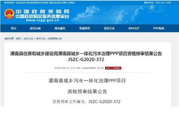 10月13日,灌南縣城鄉(xiāng)一體化污水治理PPP項(xiàng)目發(fā)布資格預(yù)審結(jié)果公告,11方通過(guò)資格預(yù)審,中交+碧水源、長(zhǎng)江環(huán)保集團(tuán)、葛洲壩等都來(lái)了。項(xiàng)目總投資292168萬(wàn)元。
