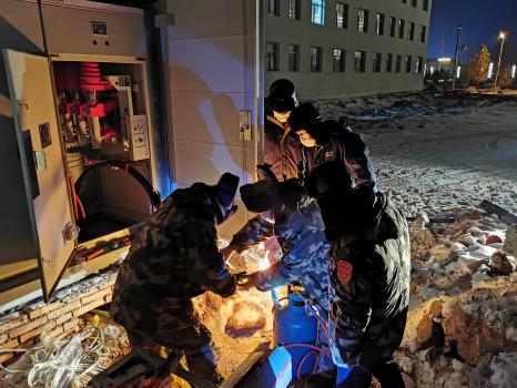 12月的東烏旗,室外氣溫已經(jīng)逼近零下二十四五度,在外面待一會(huì)兒就冷的不行,更別說(shuō)長(zhǎng)時(shí)間進(jìn)行露天作業(yè)了。由于前幾日的降雪,氣溫驟降,土壤深度凍結(jié),施工現(xiàn)場(chǎng)已不具備機(jī)具施工條件,電建東烏分公司施工人員針對(duì)施工中遇到的困難,一致決定采取“笨辦法”,挖不動(dòng)的地方先用火烤,機(jī)器進(jìn)不去的地方就用人扛著電纜往里送,想方設(shè)法確保工程按期完成。