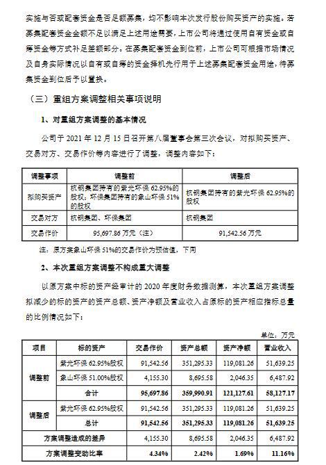 綜合考慮象山環保的項目運營情況、盈利能力及其對于上市公司重組完成后盈利能力的影響后,上市公司董事會本著增厚上市公司收益的交易原則,審慎修訂了本次交易標的范圍。最終,公司決定調整本次重組方案,將收購的標的資產范圍由紫光環保62.95%股權和象山環保51.00%股權變更為紫光環保62.95%股權。