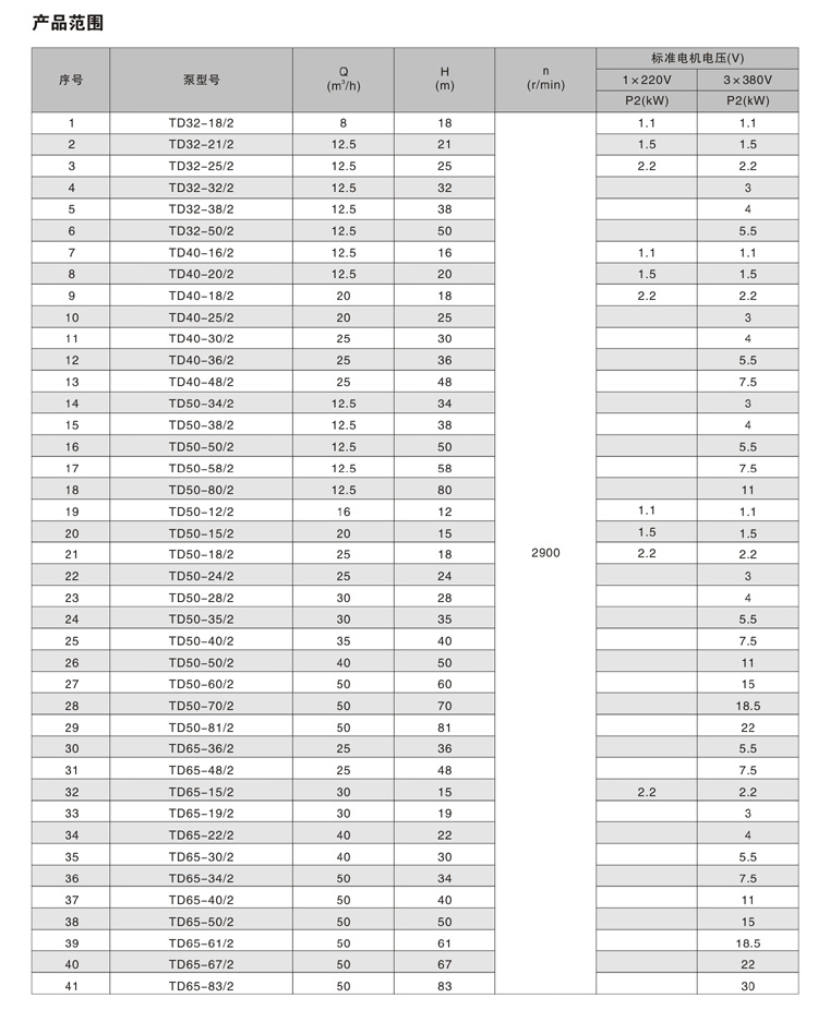 TD 泵是一種多用途產品,可以輸送從自來水到工業(yè)液體的各種不同介質,主要作為液體的輸送、增壓和循環(huán)設備使用。例如: